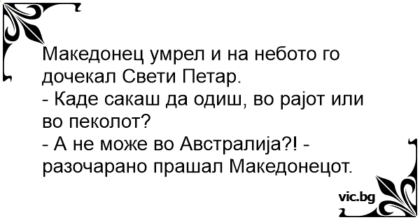 - А не може во Австралија?! - разочарано прашал Македонецот.