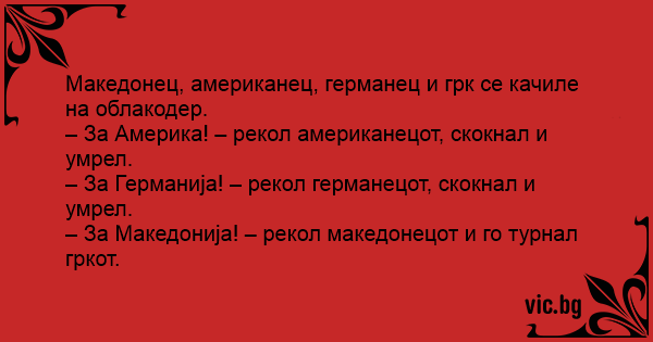 – За Македонија! – рекол македонецот и го турнал гркот.