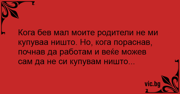 Кога бев мал моите родители не ми купуваа ништо. Но, кога пораснав, почнав да работам и веќе можев сам да не си купувам ништо...