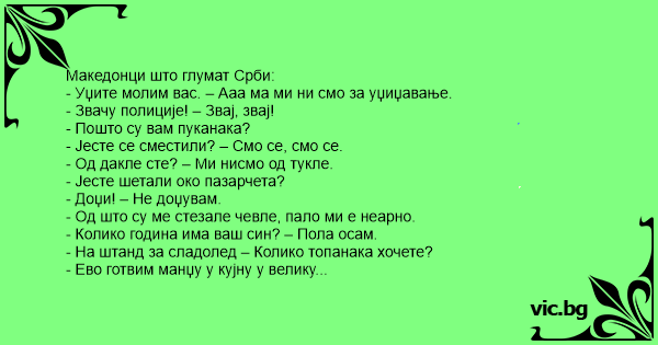 - Србинка на пазар во Охрид: Шта вам је ово? Охриѓанка: Губи (Јуфки) се. Србинка: Зашто да се губим лепо сам питала шта је ово?
