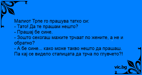 - А бе сине... како може такво нешто да прашаш. Па кај се видело стапицата да трча по глувчето?!