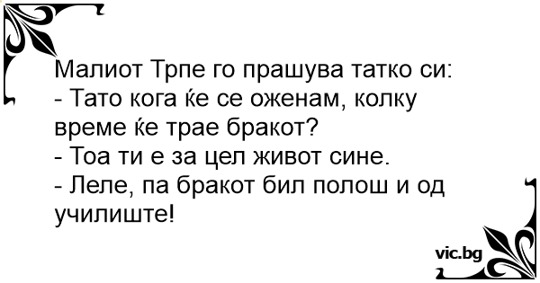 - Тато кога ќе се оженам, колку време ќе трае бракот?