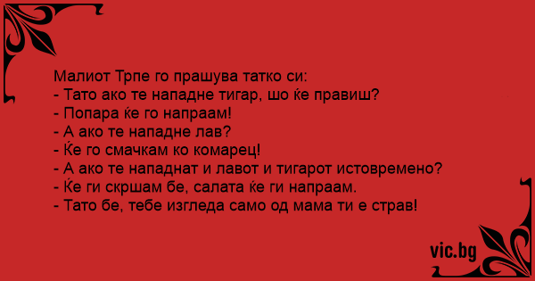 - Тато ако те нападне тигар, шо ќе правиш?