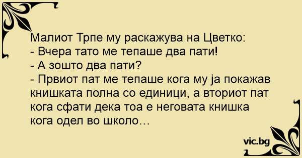 - Првиот пат ме тепаше кога му ја покажав книшката полна со единици, а вториот пат кога сфати дека тоа е неговата книшка кога одел во школо…