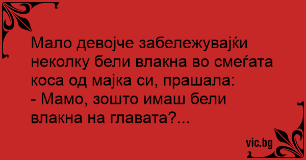 Мало девојче забележувајќи неколку бели влакна во смеѓата коса од мајка си, прашала:
