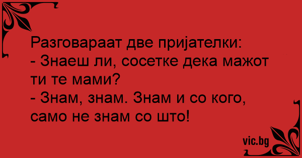 - Знаеш ли, сосетке дека мажот ти те мами?