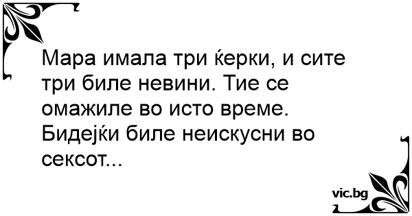 Мара имала три ќерки, и сите три биле невини. Тие се омажиле во исто време. Бидејќи биле неискусни во сексот...