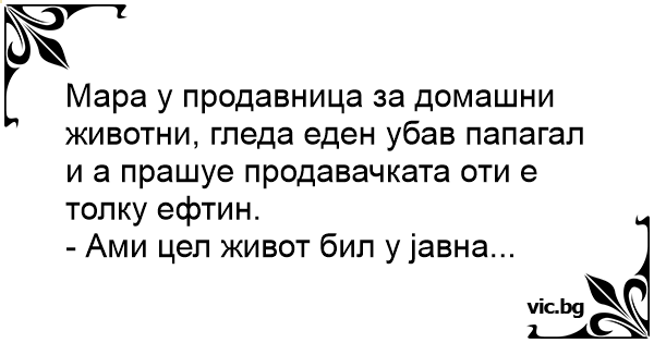 Мара у продавница за домашни животни, гледа еден убав папагал и а прашуе продавачката оти е толку ефтин.