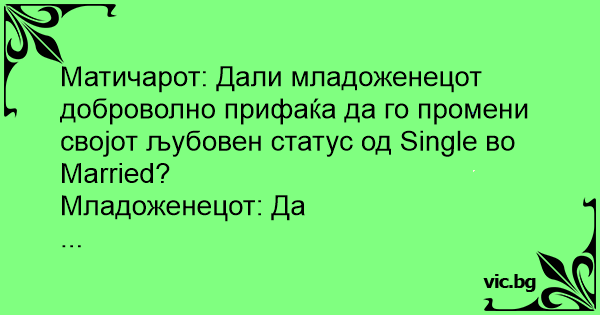 Матичарот: Дали младоженецот доброволно прифаќа да го промени својот љубовен статус од Single во Married?
