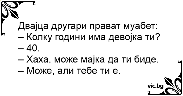 - На колко години ти е гаджето? - 42г. - Малеее, ама тя дърта, майка ми е на 42! - Това е другото, за което исках да поговорим....
