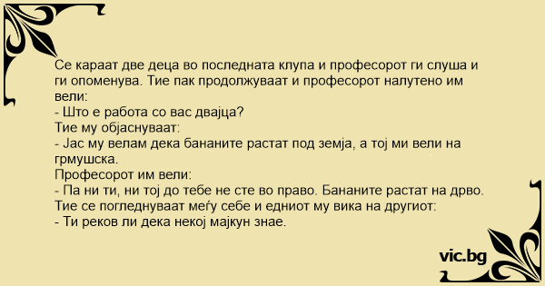 Се караат две деца во последната клупа и професорот ги слуша и ги опоменува. Тие пак продолжуваат и професорот налутено им вели: