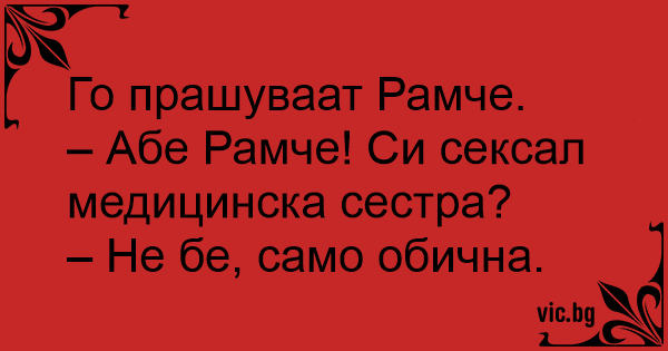 – Абе Рамче! Си сексал медицинска сестра?