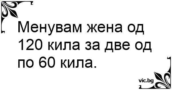 Менувам жена од 120 кила за две од по 60 кила.