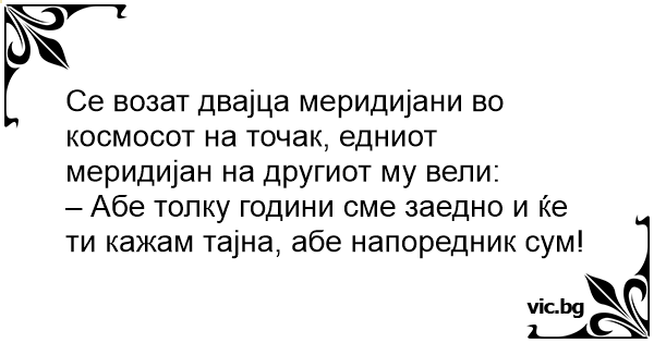 Се возат двајца меридијани во космосот на точак, едниот меридијан на другиот му вели:
