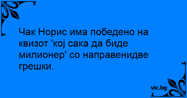 Чак Норис има победено на квизот 'кој сака да биде милионер' со направенидве грешки.