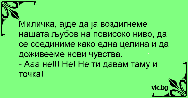 - Миличко, хайде да издигнем нашата любов на по-високо ниво, да се съединим като едно цяло и да изживеем нови чувства.