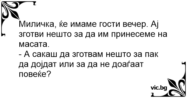 Миличка, ќе имаме гости вечер. Ај зготви нешто за да им принесеме на масата.