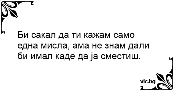 Би сакал да ти кажам само една мисла, ама не знам дали би имал каде да ја сместиш.