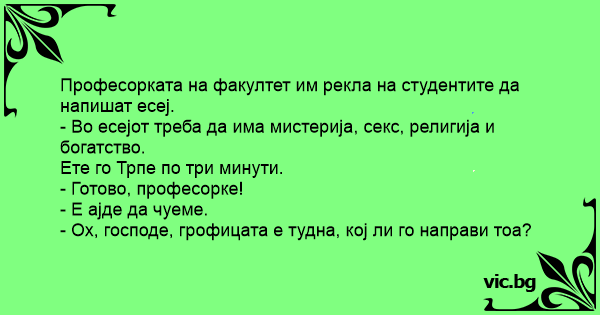 Децата в класа на Иванчо получили за домашно да напишат съчинение в стила на Агата Кристи.