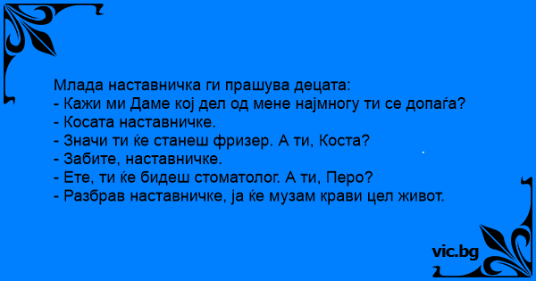 - Ете, ти ќе бидеш стоматолог. А ти, Перо?