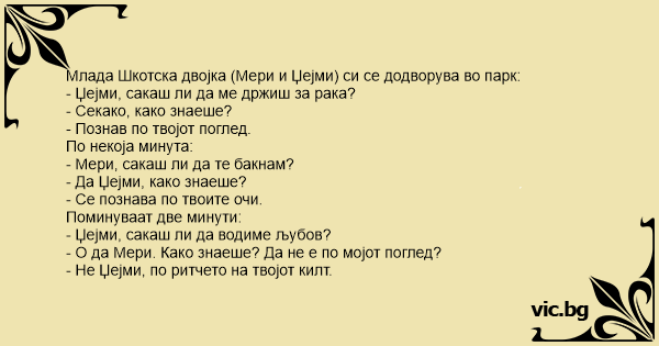 Млада Шкотска двојка (Мери и Џејми) си се додворува во парк: