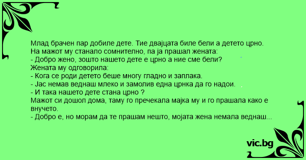 - Добро жено, зошто нашето дете е црно а ние сме бели?