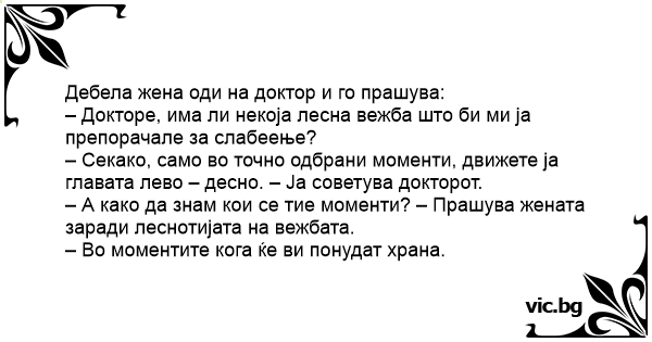 – Докторе, има ли некоја лесна вежба што би ми ја препорачале за слабеење?