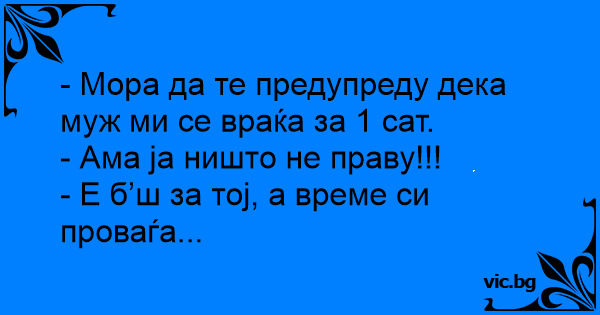 - Мора да те предупреду дека муж ми се враќа за 1 сат.