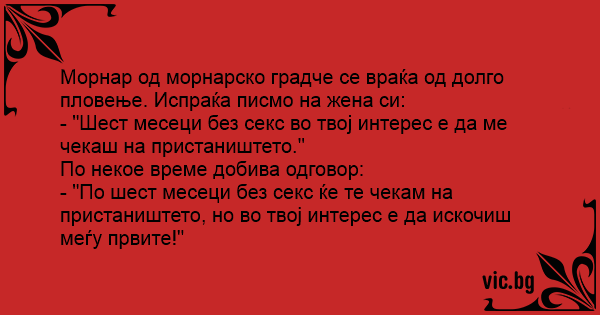 - "Шест месеци без cekc во твој интерес е да ме чекаш на пристаништето."