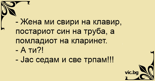 - Жена ми свири на клавир, постариот син на труба, а помладиот на кларинет.