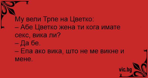 – Абе Цветко жена ти кога имате cekc, вика ли?