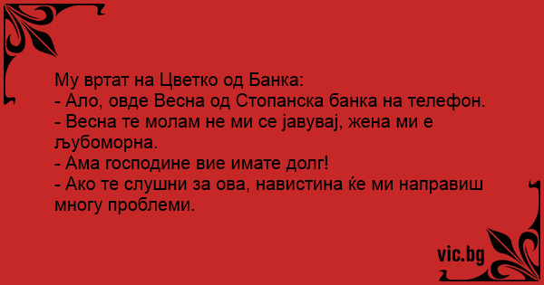 - Весна те молам не ми се јавувај, жена ми е љубоморна.