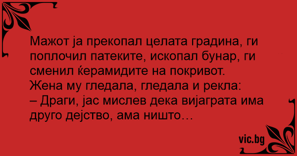 Жена му гледала, гледала и рекла: