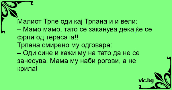 – Оди сине и кажи му на тато да не се занесува. Мама му наби рогови, а не крила!