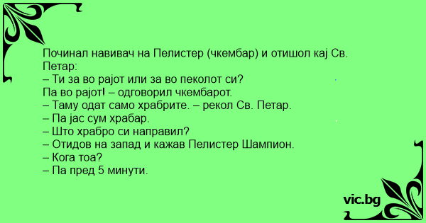 Па во рајот! – одговорил чкембарот.