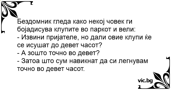 - Извини пријателе, но дали овие клупи ќе се исушат до девет часот?