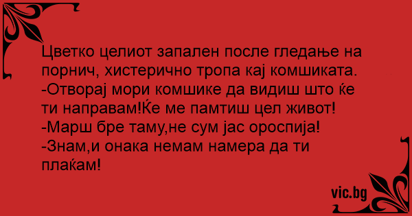 Цветко целиот запален после гледање на порнич, хистерично тропа кај комшиката.