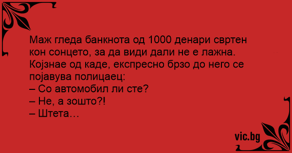 Маж гледа банкнота од 1000 денари свртен кон сонцето, за да види дали не е лажна.