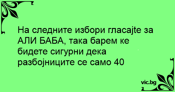На следните избори гласаjte за АЛИ БАБА, така барем ке бидете сигурни дека разбоjниците се само 40