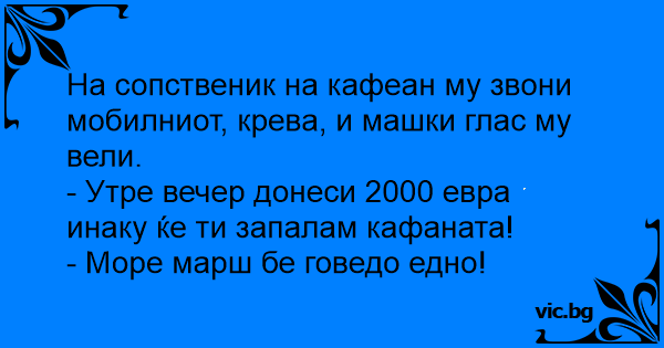 На сопственик на кафеан му звони мобилниот, крева, и машки глас му вели.