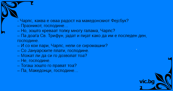 - Чарлс, каква е оваа радост на македонскиот Фејсбук?
