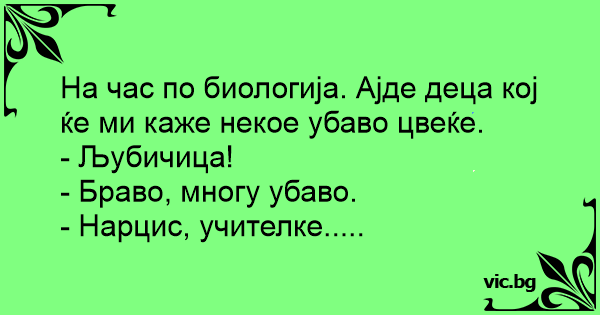 На час по биологија. Ајде деца кој ќе ми каже некое убаво цвеќе.