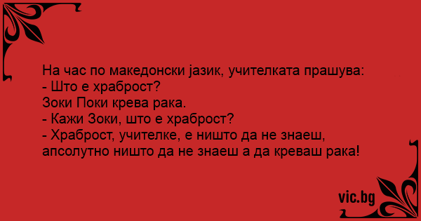 - Храброст, учителке, е ништо да не знаеш, апсолутно ништо да не знаеш а да креваш рака!