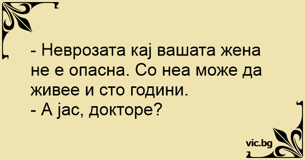 - Неврозата каj вашата жена не е опасна. Со неа може да живее и сто години.