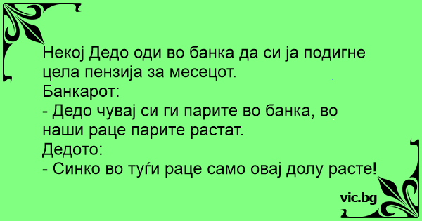 - Дедо чувај си ги парите во банка, во наши раце парите растат.