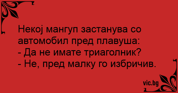 Ченге спира блондинка с кола: Policjant zatrzymuje blondynkę i prosi o pokazanie trójkąta. - Ojej, wczoraj zgoliłam. Un vigile ferma una bionda. Controlla le luci, chiede di vedere la scatola delle luci, e poi chiede: “E il triangolino?”. E la bionda: “‘L’ho rasata questa mattina”.
