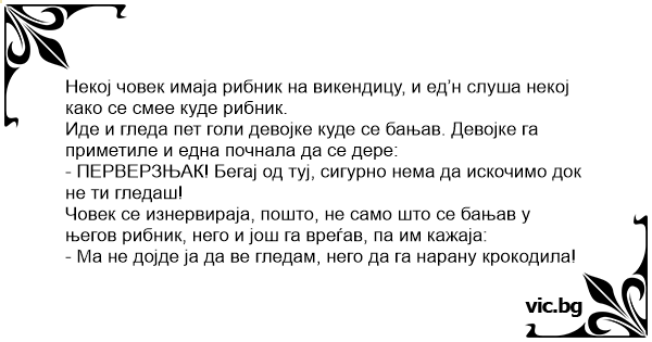 Човек се изнервираја, пошто, не само што се бањав у његов рибник, него и још га вреѓав, па им кажаја: