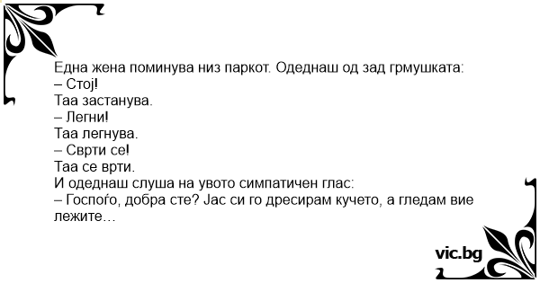 – Госпоѓо, добра сте? Јас си го дресирам кучето, а гледам вие лежите…