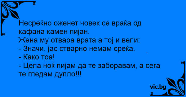 Несреќно оженет човек се враќа од кафана камен пијан.