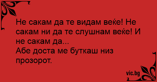 Не сакам да те видам веќе! Не сакам ни да те слушнам веќе! И не сакам да...